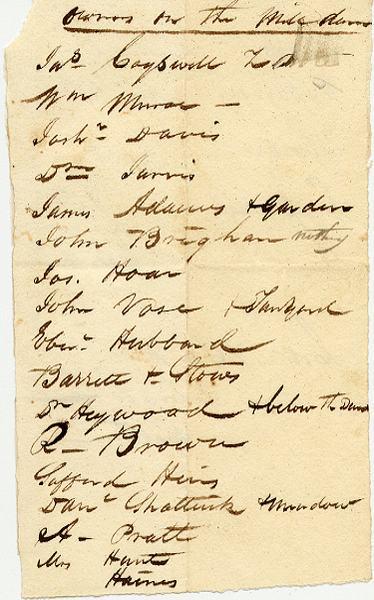 In the center of Concord, the transition from a haphazard collection of colonial businesses to an orderly early-nineteenth-century commercial area was brought about by the Concord Mill Dam Company, a real-estate partnership incorporated in 1828 that sought to develop the center of town. Documentation lists the incorporators as Nehemiah Ball, John Keyes, Ephraim Merriam, Abel Moore, and Daniel Shattuck. With an initial budget of $20,000, the company bought land on both sides of the milldam. They drained the mill pond, widened the former site of the dam, and built a road.