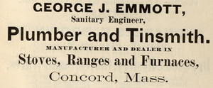 “Advertisement for George Emmott's Plumber and Tinsmith Shop at Anderson Market,” William Munroe Special Collections at the Concord Free Public Library, accessed January 25, 2026, https://mail.sc.concordlibrary.org/items/show/4979.