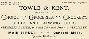 “Towle & Kent Advertisement,” William Munroe Special Collections at the Concord Free Public Library, accessed January 25, 2026, https://mail.sc.concordlibrary.org/items/show/4980.