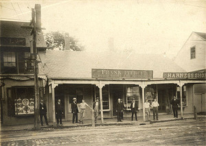 Early twentieth-century photograph of local merchants on the north side of the Mill Dam.