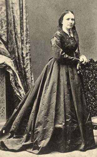 Anne Hagar Damon (shown here in a carte-de-visite photograph) was born in Weston, Massachusetts in March 1839 to Nathan and Mary Ann Hagar. She came to Concord to teach school “in the western part of town,” and there met Edward Damon. They were married in 1860.