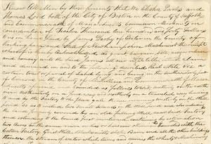 Know all men by these presents that Mr. Elisha Parks and Thomas Lord both of the City of Boston in the County of Suffolk and Commonwealth of Massachusetts Commission Merchants in consideration of Twelve Thousand One Hundred and Forty Dollars to us in hand paid by James Derby of Exeter in the County of Rockingham and State of New Hampshire Machinist this receipt whereof is hereby acknowledged as grant, bargain, sell, assign release and convey unto the said James all our right, tithe, interest, claim and demand in and to the following described Real estate viz a certain tract or parcel of land lying and being in the southwesterly part of Concord in the County of Middlesex and Commonwealth of Massachusetts aforesaid and bounded as follows to west, southerly on the north river, northeasterly on a ford way and northerly on a traveled way leading to and by the factory to the flood gate there running westerly on the mill pond so as to include two small islands in the mill pond and also including the land formerly covered by an old fulling mill near said factory and extending to the bound first mentioned containing by estimation two acres be the same more or less or however otherwise bounded with the Cotton Factory, Grist Mill, Blacksmiths shop, Barn and all the other buildings thereon the stream of water which turns and carries the wheels and machinery...