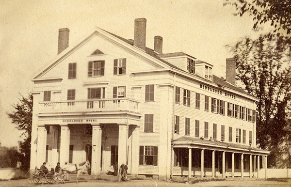 Over its almost century-long existence, the Middlesex Hotel weathered a series of dramatic events. Having burned down in 1845, it was rebuilt and reopened the following year. Yet in the ensuing decades the hotel struggled from poor management on the part of a string of different owners. Moreover, the ease of railroad travel, which decreased travelers’ dependence on overnight lodging, hurt business. In 1882, the hotel shut down permanently. For almost two decades the building stood abandoned, its broken windowpanes letting in rain, leaves, wind, and snow through the seasons.