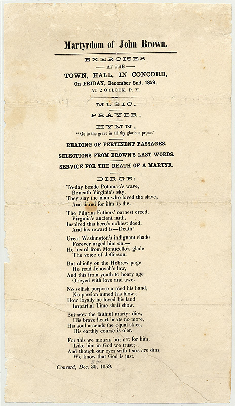 “John Brown Memorial Service Broadside,” William Munroe Special Collections at the Concord Free Public Library, accessed January 26, 2026, https://mail.sc.concordlibrary.org/items/show/5021.