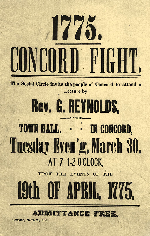 Broadside advertising the centennial of the 1775 "Concord Fight."