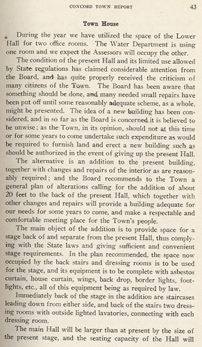 A page from the 1915 Concord Town report on the state of the Town House and proposed renovations.